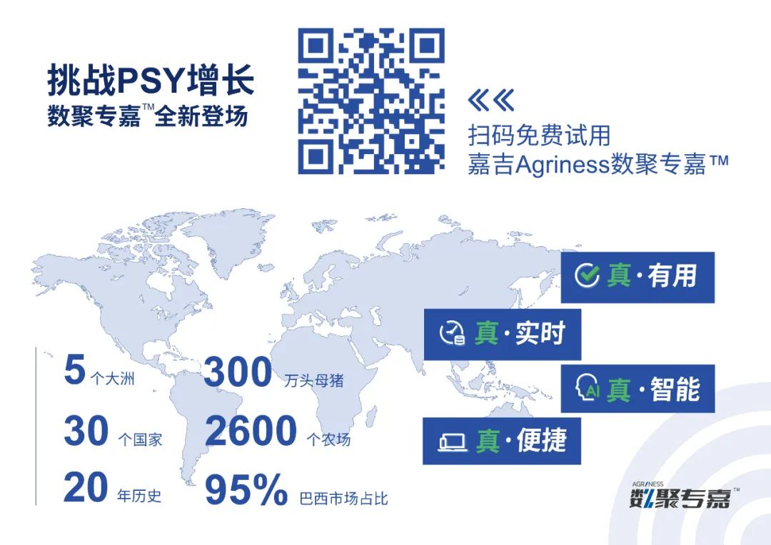数聚专嘉®作为一款专业化的农场管理软件,经过二十多年的发展,在全球五个大洲三十多个国家服务两千多个农场,服务高产母猪数百万头,而且实现了客户PSY持续多年的增长,是一个帮助农场实现生产潜力最大化的有力工具。如果您对这个内容感兴趣并希望深入了解,欢迎您咨询和试用数聚专嘉®