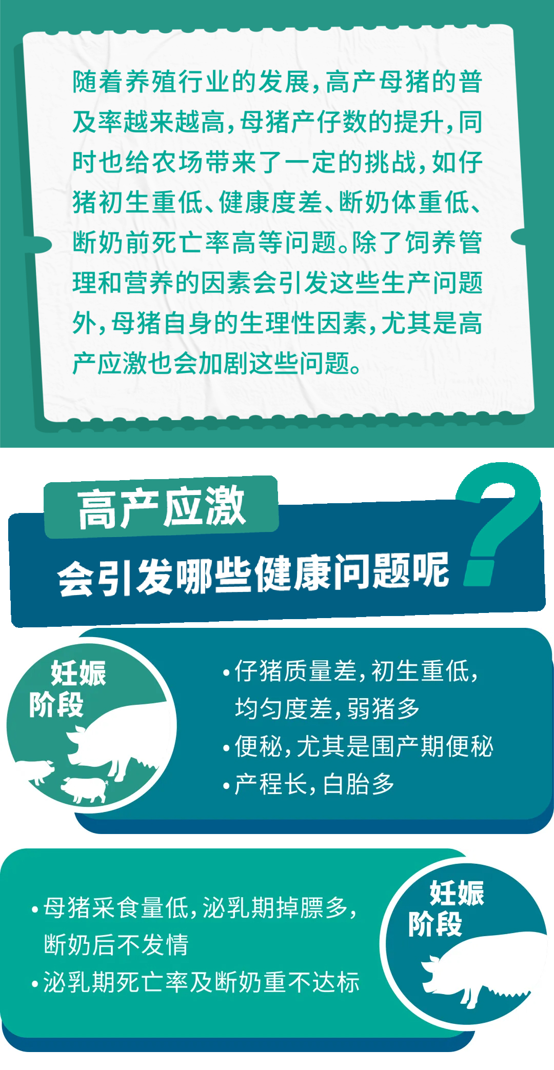 高产母猪面临比较严峻的应激、肠道健康及免疫等问题,仅靠饲养管理和传统营养是远远不够的,建议猪场添加功能性“微营养”来改善母猪的健康状况,优选具有优化肠道健康和免疫功能、缓解炎症、提高抗氧化能力的功能性添加剂,助力改善母猪的健康问题。