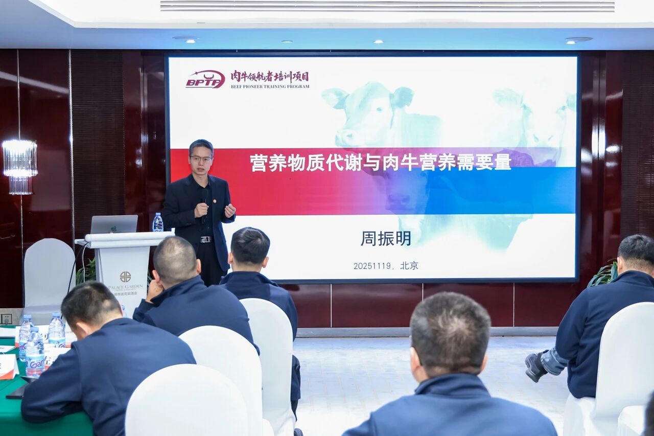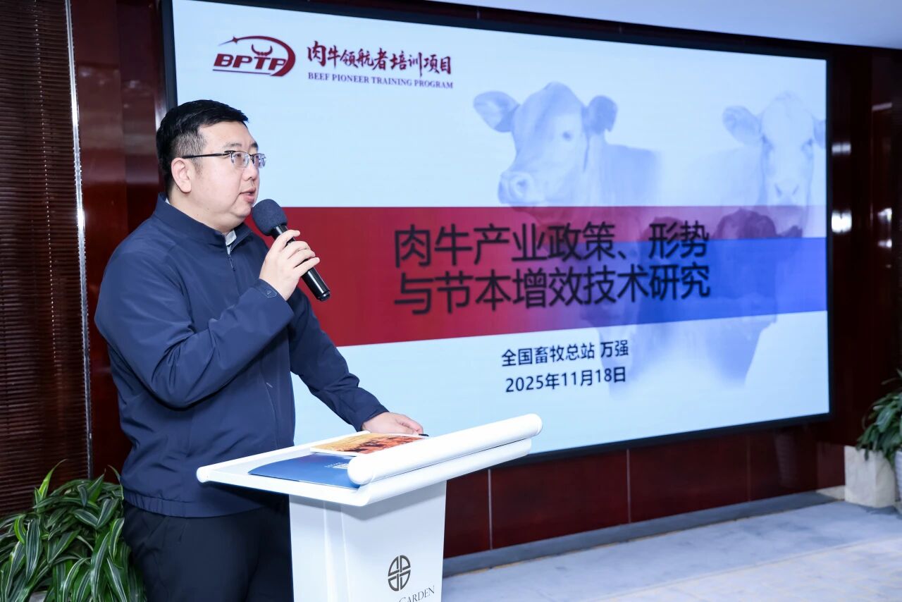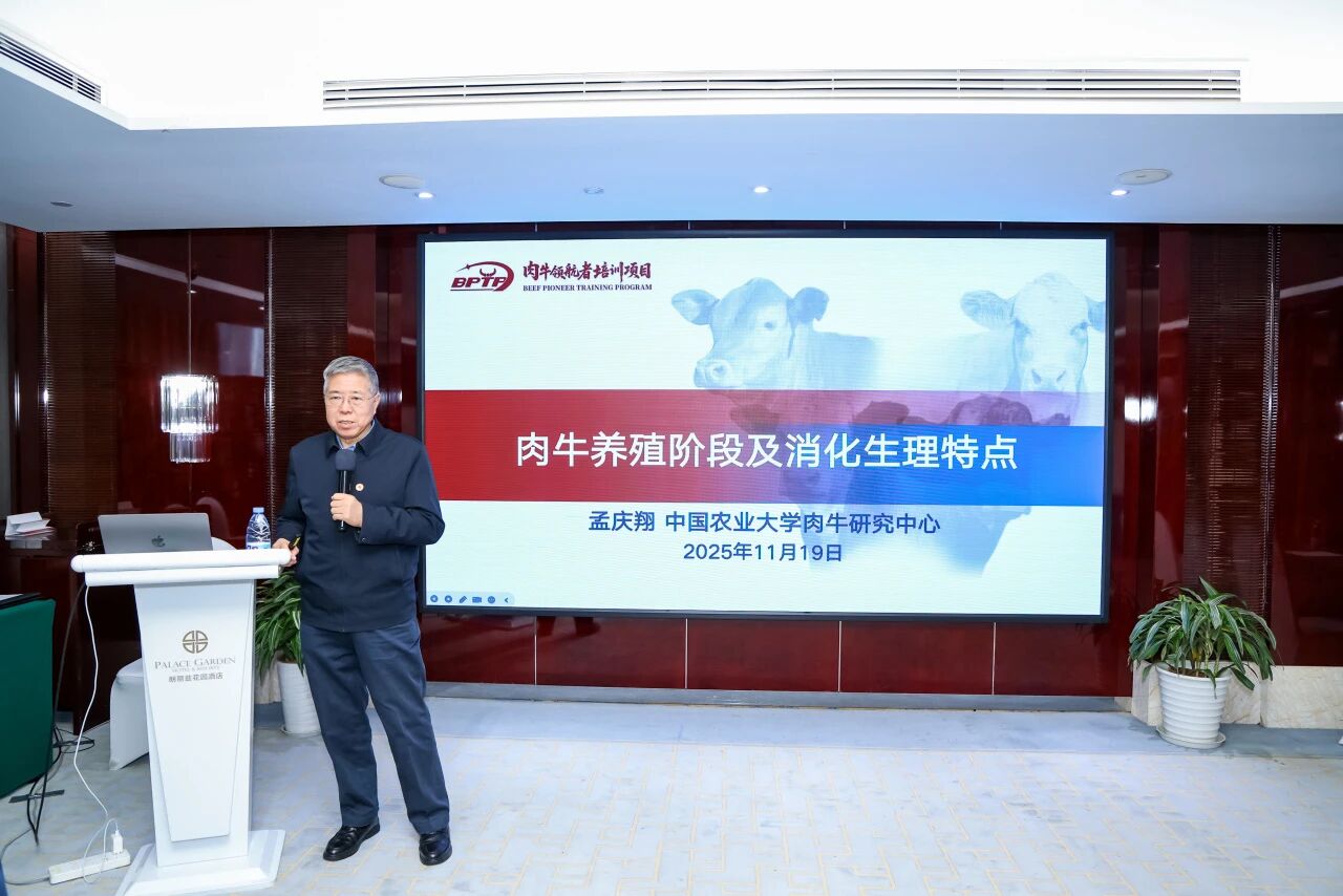 由中国农业大学肉牛研究中心与嘉吉动物营养与健康事业部联合主办,北京中农大创新研修学院与中国肉牛产业发展协同创新平台共同协办的“肉牛领航者培训”第一期第一阶段,于2025年11月18日至20日在北京郎丽兹西山花园酒店成功举办。在开学仪式上,北京中农大创新研修学院张海涛院长与嘉吉动物营养与健康反刍商务总经理张钢先生分别代表协办和主办单位致辞。中国农业大学教授、中国肉牛产业发展协同创新平台理事长孟庆翔系统介绍了"肉牛领航者培训项目"的课程体系、培养目标和培训相关要求。来自中国、美国、韩国、澳大利亚、爱尔兰的专家,分别介绍了世界主要肉牛业国家的产业发展现状与未来发展趋势。来自全国肉牛业规模化牧场的19名学员参加了培训。本次培训汇聚产学研多方力量,致力于培养肉牛产业高端人才,为推动中国肉牛产业高质量发展注入新动能。