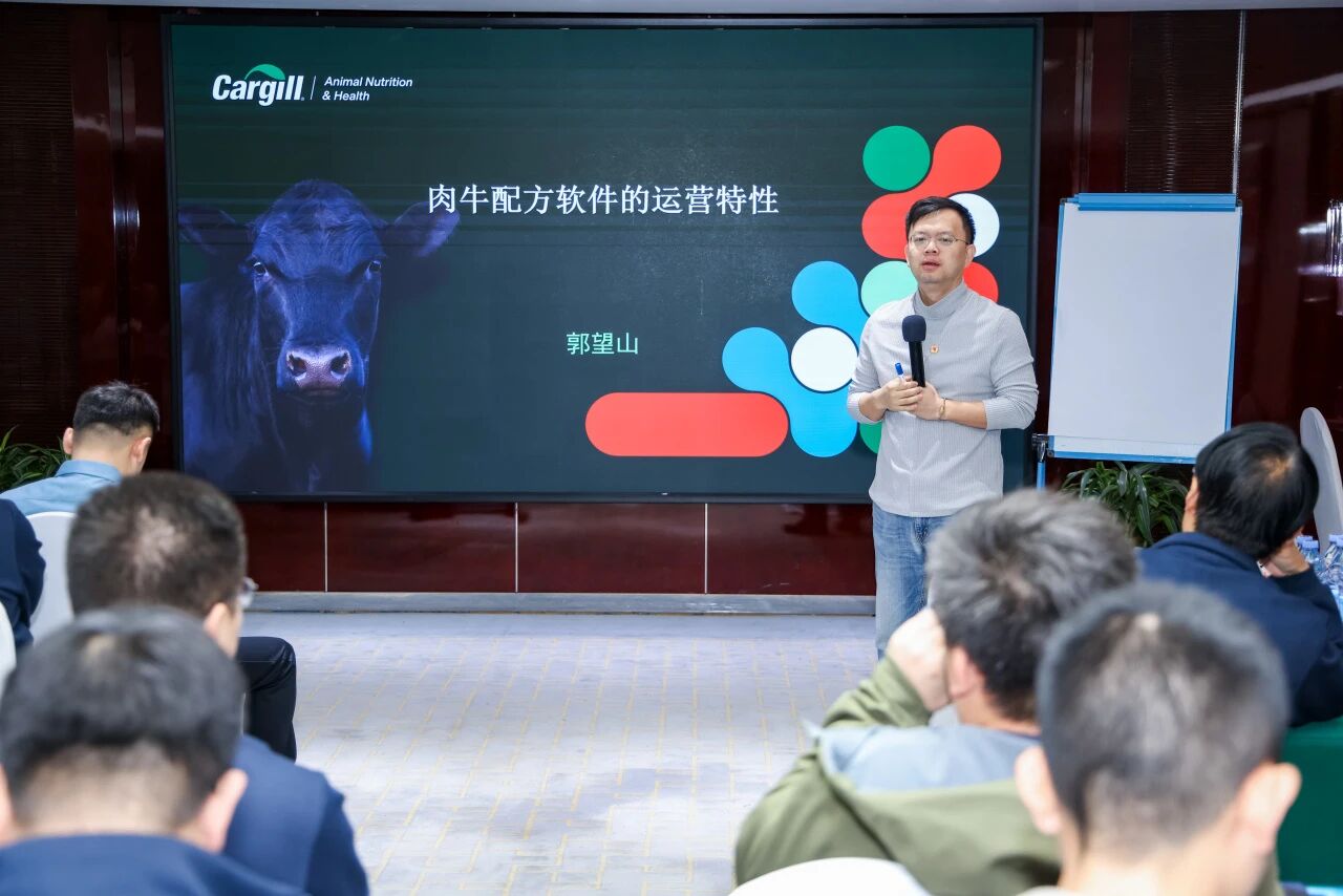 在专业技术分享环节,培训重点展示了行业前沿的技术理念与应用实践。嘉吉动物营养与健康多畜种业务技术应用总监郭望山博士详细阐释了"营养体系"的重要性及配方工作的核心理念,并组织全体学员进行了BeefMAX™配方软件的实际操作训练。嘉吉动物营养与健康肉牛技术应用经理赵禹臣先生通过实际案例深入解析了肉牛料槽管理与配方优化的关键技术,并针对中国肉牛场设计中的重要缺陷进行了系统分析,提出了切实可行的解决思路。熊接华博士进一步介绍了"好养牛PLA精准营养软件与肉牛嘉盈预测模型(4M模型)"的创新应用;此外,课程特邀北京牛之梦技术服务有限公司王智先生分享了牧场数智化管理软件的前沿实践。