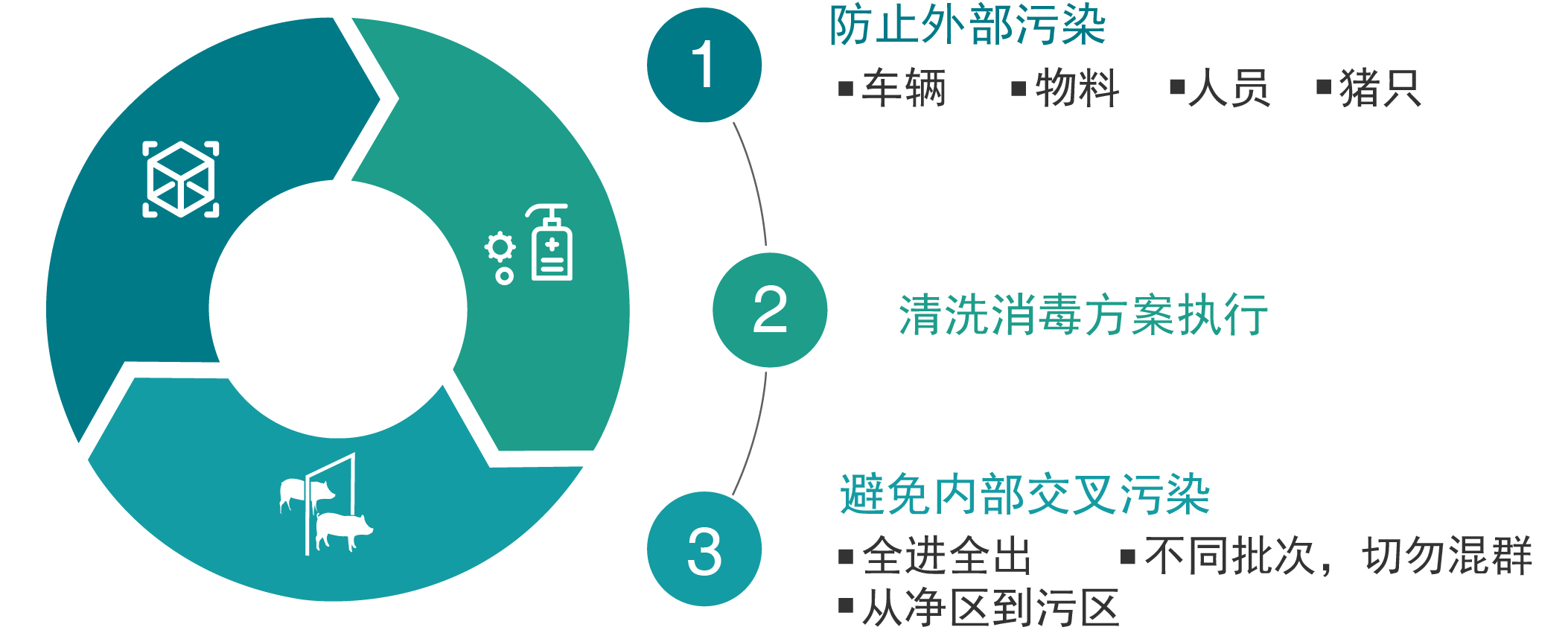 外部生物安全是阻挡疾病进入猪场的第一道防线,建立猪场疾病预防机制来限制/降低外来病原的侵入与场内疾病爆发与传播机率。